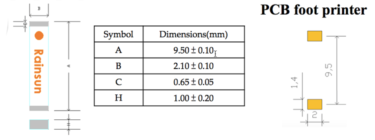 Dimensions: 9.5mm(L)X2.1mm(W)X1.0mm(H)