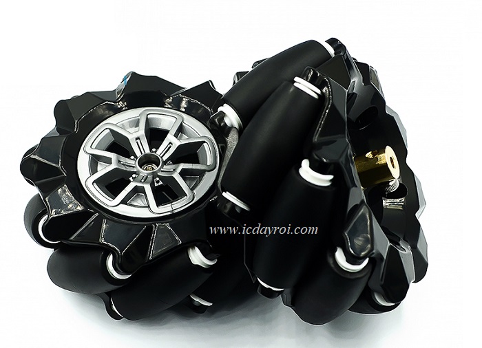 Bánh xe Mecanum là một thiết kế bánh xe đa hướng cho một phương tiện trên mặt đất di chuyển theo bất kỳ hướng nào, chẳng hạn như đi thẳng, xiên, ngang, S-line và xoay ở bất kỳ góc nào với bán kính bằng không. Với độ ồn khá thấp, loại bánh xe này có thể di chuyển ổn định và linh hoạt khi vận hành. Vì bánh xe dựa trên công nghệ truyền động đa hướng, người dùng có thể tự do điều khiển chiếc xe robot của mình ngay cả trong không gian chật hẹp. Bánh xe Mecanum này có đường kính 48mm và bao gồm 9 con lăn nhỏ được làm bằng nhựa và được bọc bằng cao su silicon chất lượng và ma sát cao, bền chắc và chống va đập.