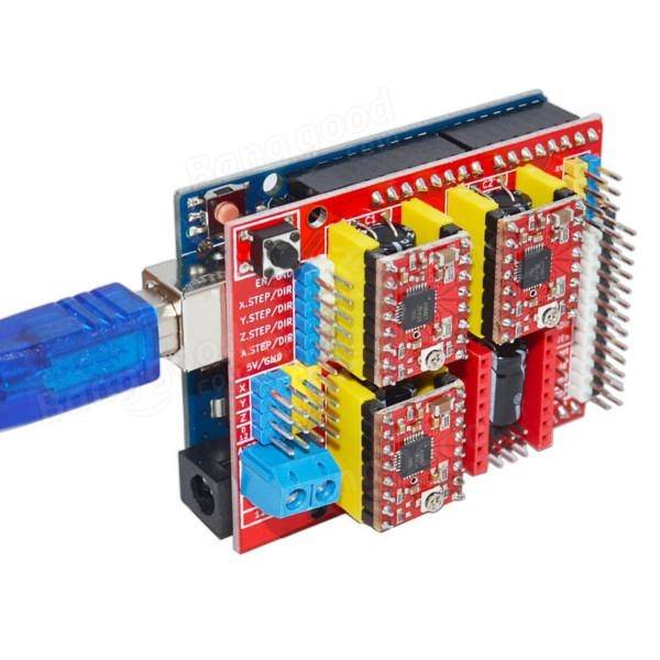 CNC shield V3 là board mở rộng của Arduino UNO R3 dùng để điều khiển các máy CNC mini. Board có 4 khay dùng để cắm các mô đun điều khiển động cơ bước A4988, khi đó board có thể điều khiển3 trục X, Y, Z và thêm một trục thứ 4 tùy chọn trên các máy CNC mini.