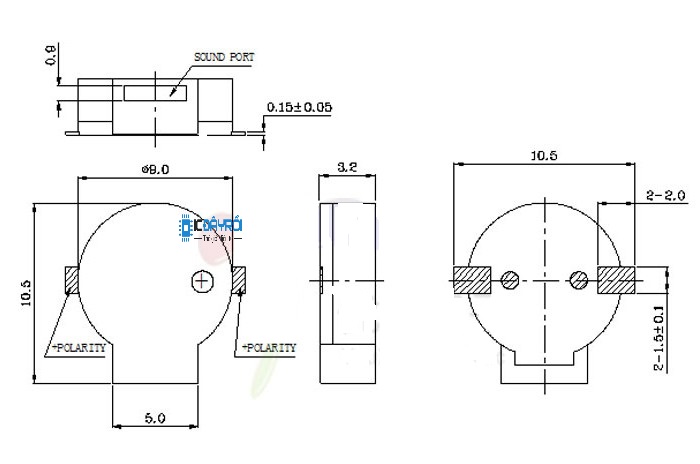 9032 SMD buzzer | 5V Passive | 2 pin | vocal side