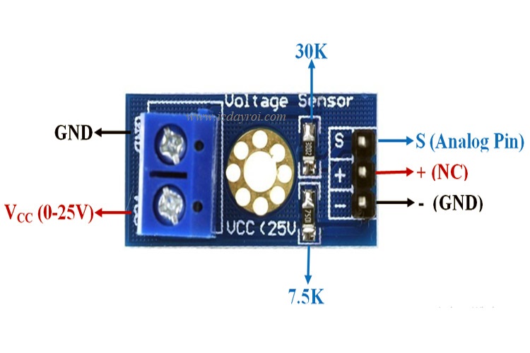 - - Điện áp đầu vào không lớn hơn 5Vx5 = 25 V (nếu sử dụng 3.3V, điện áp đầu vào không lớn hơn 3.3Vx5 = 16.5 V).