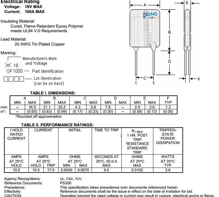 Cầu chì tự phục hồi RGEF1000 16V 10A PTC