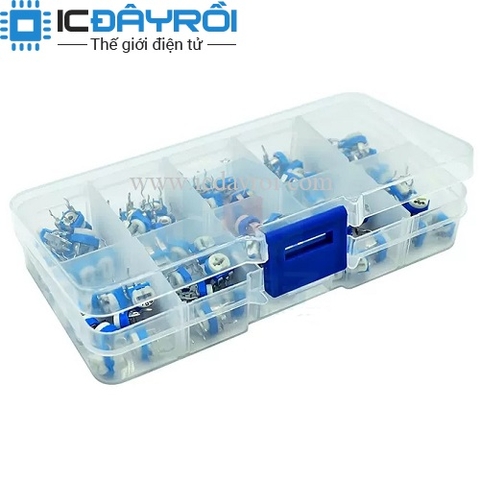 Bảng giá trị biến trở và số lượng có trong hộp: 500R, 1K, 2K, 5K, 10K, 20K, 50K, 100K, 200K, 500K, 1M mỗi loại 10 cái