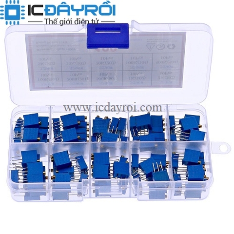 Combo biến trở tinh chỉnh 3296W 100R-100K gồm 10 ngăn với các loại biến trở tinh chỉnh có giá trị khác nhau, gọn nhẹ dễ dàng mang theo khi cần thiết.