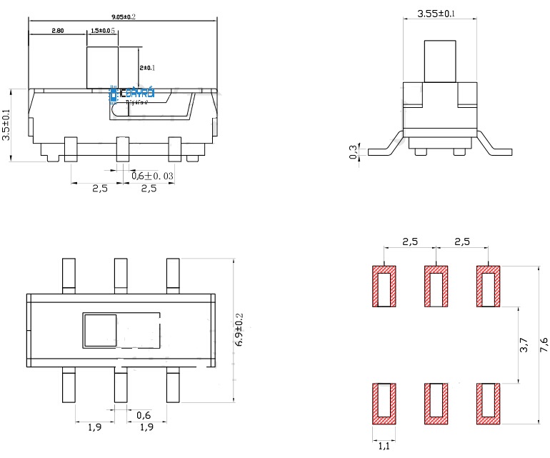 - Kích thước 9.05x3.55x5.45mm