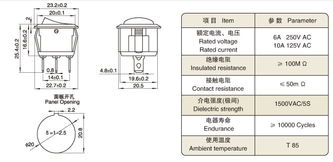 Công tắc KCD1 23MM 6A250V màu đỏ