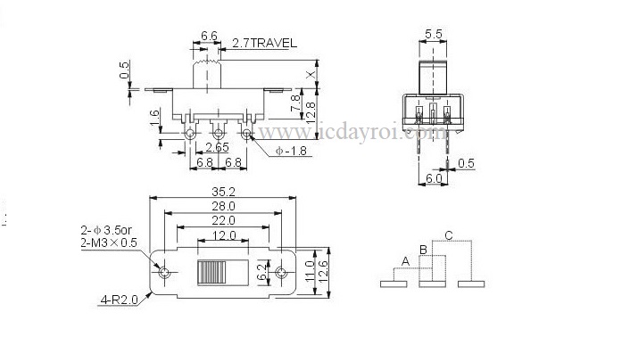 Công tắc SS-23F19(2P3T) 6 chân 8mm
