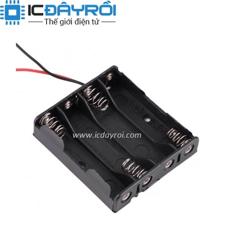 Với đế 4 pin AA, bạn có thể gắn 4 viên pin size AA (pin tiều con ó thường...) 1.5V cấp nguồn 6V hoặc pin sạc NiMH 1.2V cấp nguồn 4.8V.