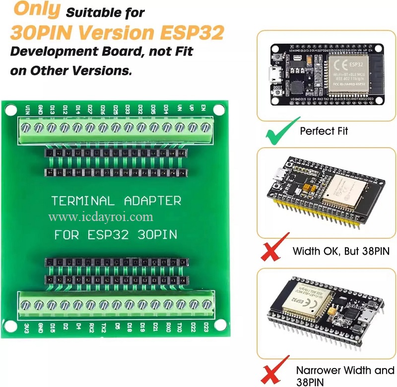 Đế mở rộng esp32 30 chân sử dụng ra chân cho: