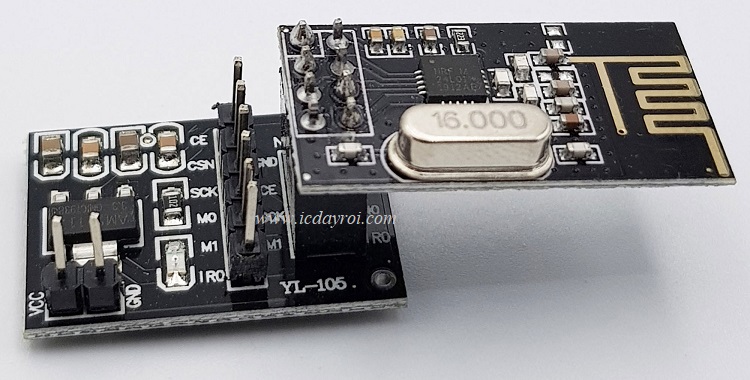 - Trên đế có tích hợp sẵn IC nguồn 3.3v dùng cho nRF24L01