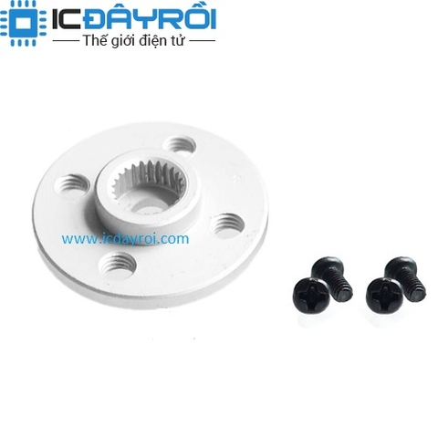 Đĩa RC Servo kim loại tròn được làm bằng nhôm hợp kim đúc cho độ cứng và độ thẩm mĩ cao, đĩa có bốn lỗ ốc 3mm giúp gắn động cơ vào cơ cấu chấp hành, giữa đĩa là lỗ răng 4mm kèm ốc siết vào trục động cơ thông dụng hiện nay: MG996, MG995, FR-1501, FR-1502,...