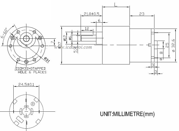 - Chiều dài hộp số giảm tốc: 22mm