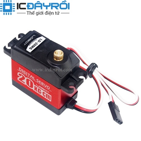Động cơ RC Servo LD-20MG 20Kg có hộp số bánh răng kim loại, tốc độ phản ứng nhanh với lực kéo khỏe theo thông số nhà sản xuất moment lên đến 20Kg.cm. so với các loại Analog RC Servo truyền thống MG995, MG996: lực kéo khỏe hơn, phản ứng nhanh hơn, chạy mượt hơn,...