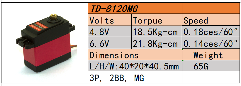 - Operating Speed (6.6V): 0.14sec / 60° at no load