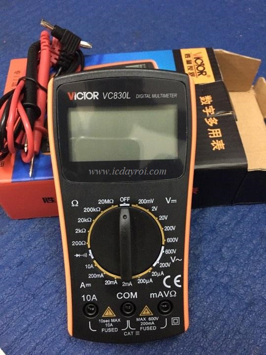 Đồng hồ đa năng Victor VC830L- VOM, với nhiều chức năng khác nhau như đo Ohm, đo điện áp, đo dòng điện, đo transistor, đo nhiệt độ, bảo vệ dòng khi quá áp.