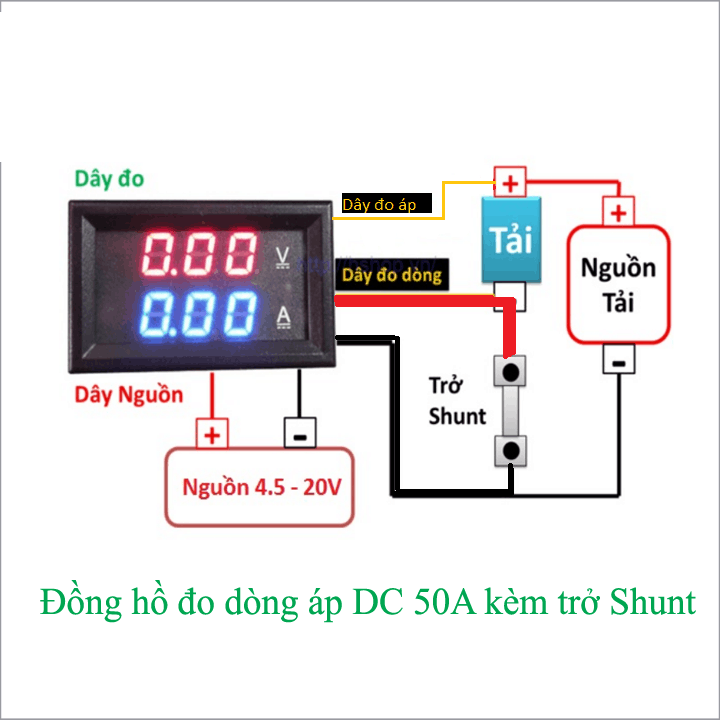 Đồng hồ đo dòng DC 100A kèm trở Shunt được sử dụng để đo và hiển thị dòng điện chạy qua tải DC, tối đa 100A, đồng hồ có đi kèm trở Shunt, thiết kế nhỏ gọn, bền bỉ, tiện...