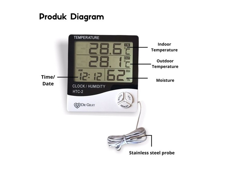 Đồng hồ đo nhiệt độ và độ ẩm HTC-2 là bản nâng cấp của Đồng hồ đo nhiệt độ và độ ẩm HTC-1, HTC-2 sử dụng màn hình LCD lớn hơn có độ chính xác cao giúp hiển thị trực quan, giao diện điều khiển đơn giản dễ sử dụng.