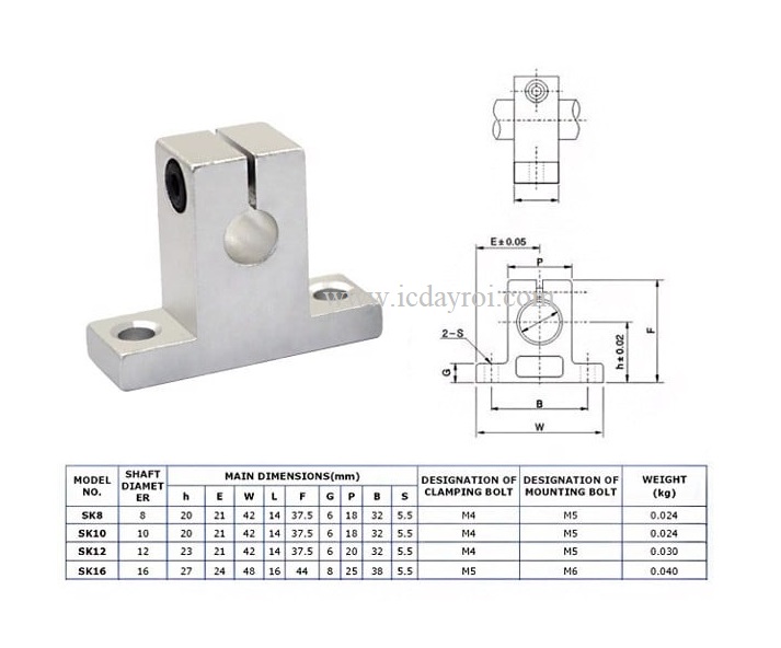 Gối đỡ thanh trượt tròn 10mm dùng đỡ 2 đầu cho các thanh trượt tròn trong các máy CNC, máy in…