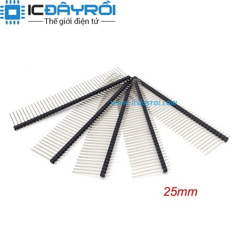 Rào đực đơn 40pin chân thẳng 2.54mm dài 25mm được sử dụng trong các mạch điện tử giúp kết nối với dây bus hoặc giữa các board mạch lại với nhau.