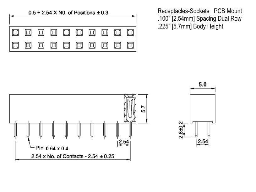 hàng rào cái 2x10 kích thước giữa 2 chân 2.54mm