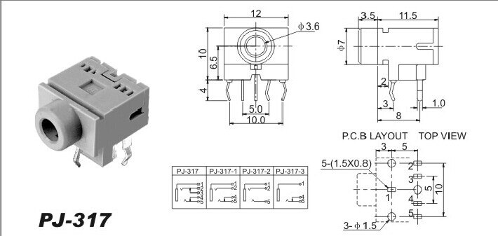Jack audio PJ-317 3.5MM có 3 màu lựa chọn: hồng, xanh, đen