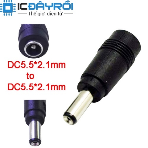 Jack DC DC5.5*2.1 từ đầu đực 5.5x2.1MM sang đầu cái 5.5x2.1MM.