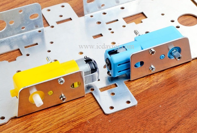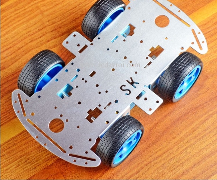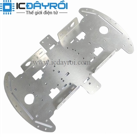 Khung xe 4 bánh hợp kim nhôm 4WD có thiết kế đơn giản với chỉ 1 tấm nền duy nhất tuy nhiên được tính toán tối ưu để có thể tích hợp các loại board mạch.