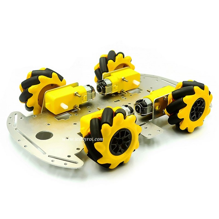 - Đi kèm 4 bánh xe đa hướng Mecanum + động cơ giảm tốc, Chỉ cần thêm board điều khiển + pin là có ngay bộ xe đa hướng