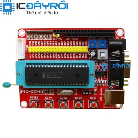 KIT PIC 16F877A hộ trợ cổng USB và điện áp DC 12V, Giao diện nạp phần mềm ICSP, gỡ lỗi với PicKit 2 & ICD2 ….. Thiết kế với hàng loạt các cổng I/O tương thích với các chip PIC DIP40
