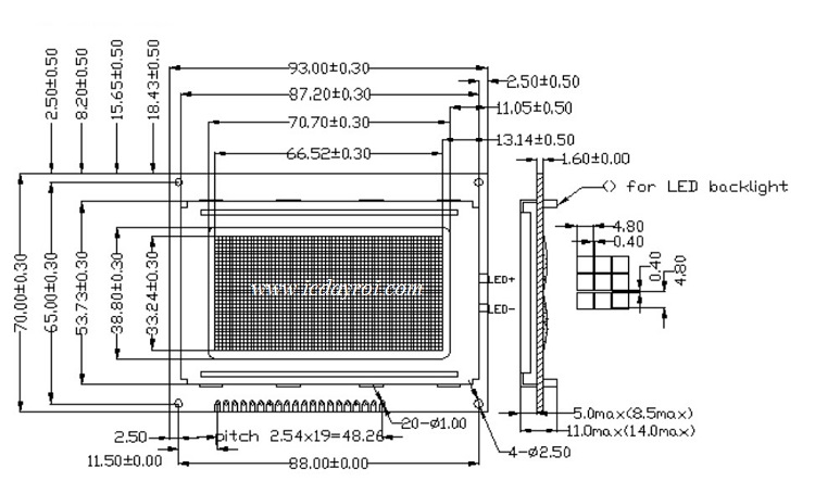 Kích thước: 93.0 x 70.0 x 13.5 mm