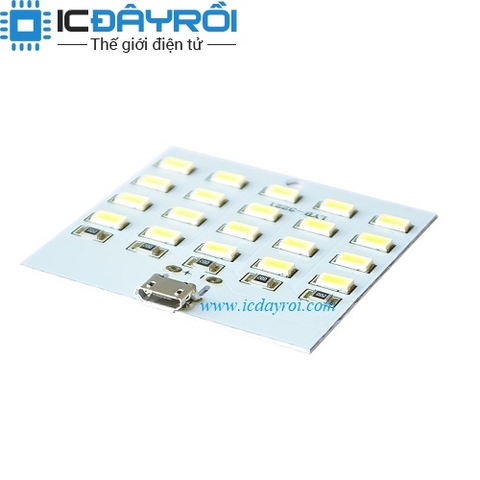 Mạch 20 led siêu sáng USB 5V được sử dụng để chiếu sáng trong các mô hình, đèn ngủ, tủ đồ, ngăn kéo,..., mạch sử dụng nguồn 5VDC từ cổng Micro USB hoặc chân nguồn trên mạch rất tiện dụng.