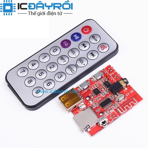 Mạch giải mã khuếch đại âm thanh Bluetooth 4.1 thẻ nhớ USB kèm remote là sản phẩm mạch giải mã âm thanh dùng để chế loa không dây, loa nghe nhạc, loa cầm tay mini..vv. Sản phẩm hỗ trợ giải mã âm thanh từ khe cắm thẻ nhớ, cổng USB và đặc biệt là kết nối không dây bluetooth 4.1 dễ dàng kết nối với điện thoại, máy tính bảng. Ngoài ra, mạch còn tích hợp mạch khuếch đại âm thanh stereo 3W x2 tiện dụng khi chế loa mini mà không cần thêm mạch khuếch đại khác, có remote hồng ngoại điều khiển từ xa vô cùng tiện lợi.
