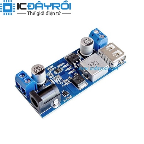 Mạch chuyển đổi dc-dc 5V 5A có kích thước nhỏ gọn 63 * 27 * 10mm, đầu vào là jack dc, đầu ra là cổng usb thuận tiện cho việc lắp đặt trong các mạch điện tử.