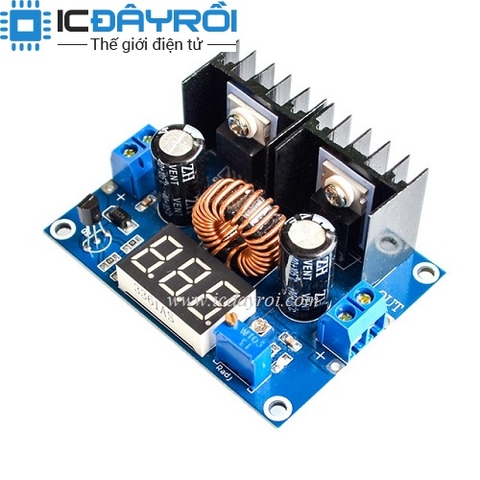 Mạch hạ áp 8A XL4016 hiển thị led có chức năng điều chỉnh hạ điện áp với dòng tải tối đa lên đến 8A, công suất tối đa lên đến 200W.