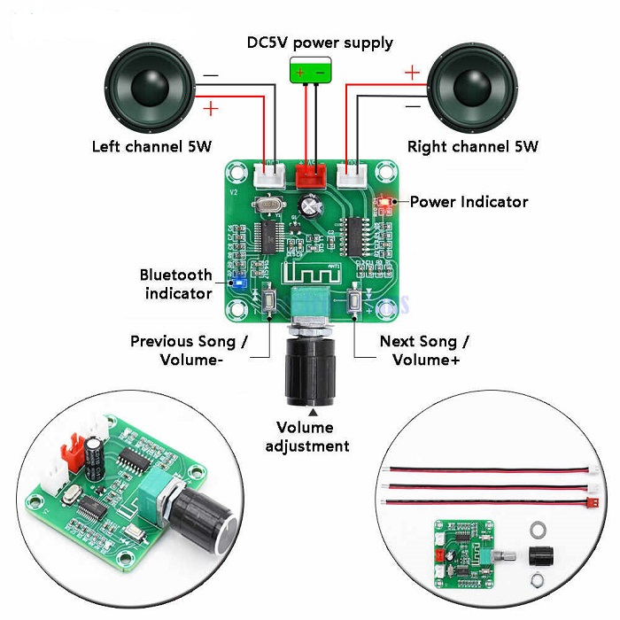 Mạch khuếch đại âm thanh bluetooth 5.0 công suất loa 5W×2