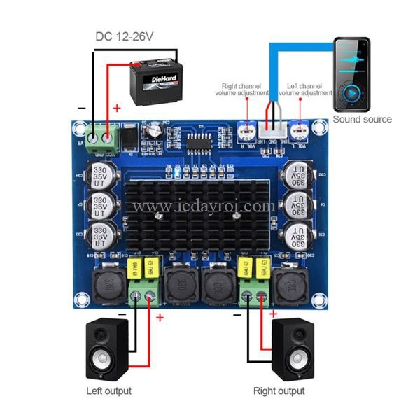 Mạch khuếch đại âm thanh XH-M543 2*120W cho đầu ra 2 kênh, âm thanh class D. Là module phù hợp với các sản phẩm tự chế DIY, hoạt động ổn định, âm thanh trung thực, dễ dàng sử dụng.