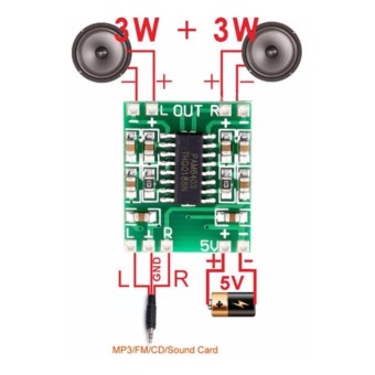 Mạch Khuếch Đại Âm Thanh PAM8403 6W Hifi 2.0 Class D - Không Volume với tổng công suất 6W cho 2 ngõ ra và có thể sử dụng với nguồn 5VDC thích hợp cho các ứng dụng khuếch đại âm thanh cần sự nhỏ gọn và sử dụng điện áp thấp (5V).