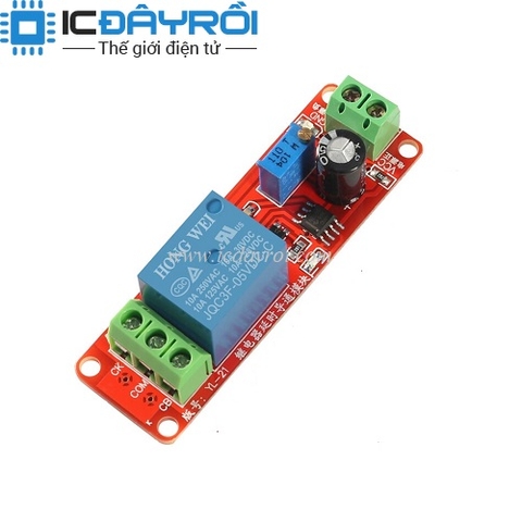 Mạch Tạo Thời Gian Trễ Đóng Relay 5V được sử dụng IC NE555 với thời gian trễ mặc định từ 0 - 10s được điều chỉnh bằng chiết áp. Ngõ ra của mạch là 3 chân của relay: chân chung(COM), thường đóng(NC), thường mở(NO) có thể điều khiển được tối đa điện áp 250VAC.