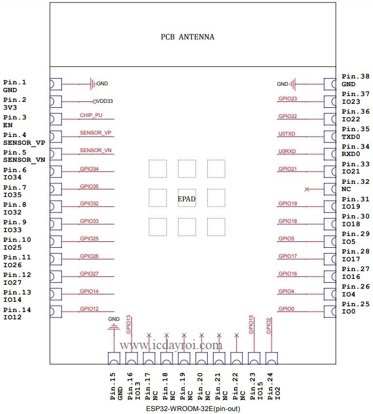 Mạch RF thu phát Wifi BLE ESP32-WROOM-32E-N4 4MB