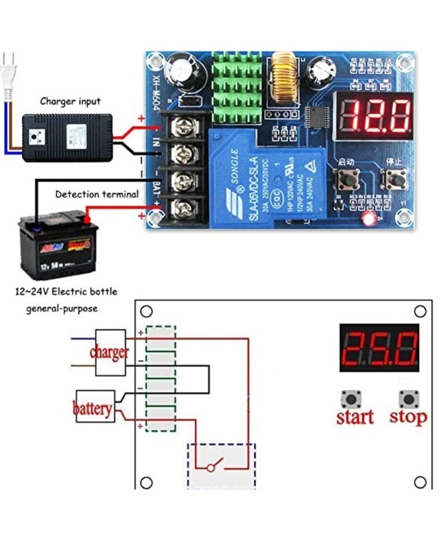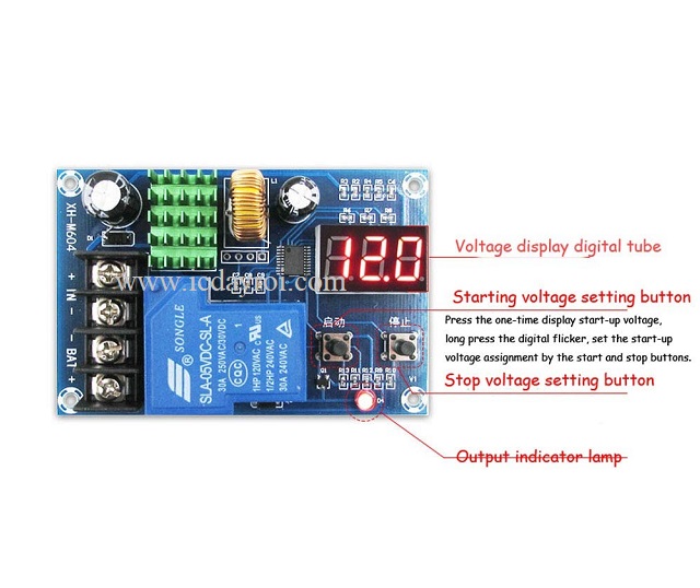 Mạch Quản Lý Sạc Ắc Quy Tự Ngắt XH-M604 được sử dụng để quản lý đóng ngắt điện sạc cho Ắc quy. Mạch được tích hợp chip điều khiển điện áp sạc cho Ắc Quy với 2 nút nhấn điều chỉnh điện áp sạc và điện áp ngắt.