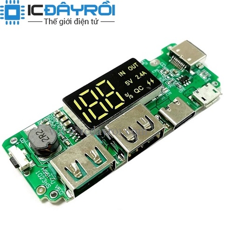 Mạch sạc dự phòng tích hợp sạc nhanh 5V 2.4A có LED: mạch có thiết kế đẹp mắt,độ bền và chính xác cao.Được sử dụng sạc cho hầu hết các loại điện thoại hiện nay với khả năng tự nhận diện thiết bị, điều chỉnh dòng ra phù hợp cho thiết bị sac, hạn chế chai pin khi sạc.