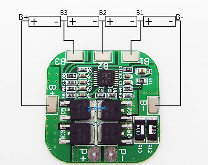 Mạch sạc và bảo vệ Pin 4S 20A Dùng cho bộ pin li-ion 18650 Dòng xả 20A, xả đỉnh 25A Dòng sạc 16.8 - 17V / 30A(max) Bảo vệ điện áp + sạc pin 4.28 ± 0.05V + xả pin 2.55 ± 0.08V Cân bằng pin 4.2 ± 0.025 V/± 0.05V 10 MOS Bảo vệ pin khỏi sạc ở điện áp quá cao, thời gian phát hiện 0.1s Bảo vệ pin khỏi xả quá sâu, thời gian phát hiện 0.1s Bảo vệ xả quá dòng 25A, thời gian phát hiện 9ms Bảo vệ chống chập đầu ra với thời gian phát hiện chập 250ms Cân bằng điện áp pin Mạch tự cân bằng được điện áp các cell khi sạc, tuy nhiên khi dùng với dòng xả lớn, bạn nên dùng các bộ sạc pin cân bằng chuyên dụng như imax B6 sẽ tốt hơn! Dùng cho nguồn pin máy khoan, bắt vít, hoặc các máy công cụ cầm tay cỡ nhỏ và vừa ...