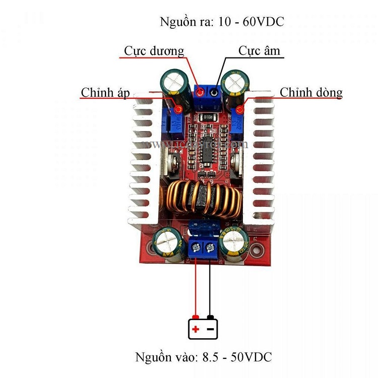 - - Điện áp ra: 10 – 60VDC ( Điện áp ra phải cao hơn áp đầu vào. tăng áp)