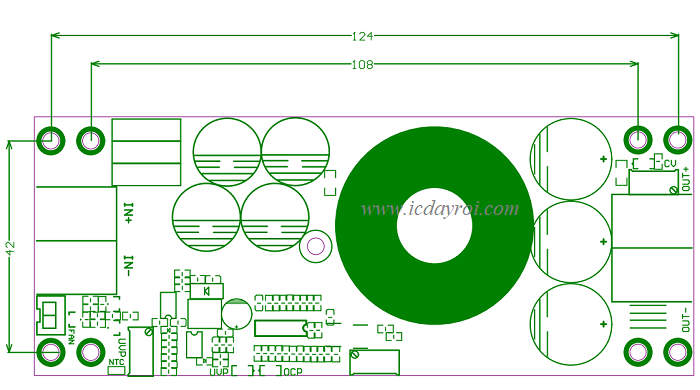 - Điện áp ngõ ra: DC 13V ~ 97V