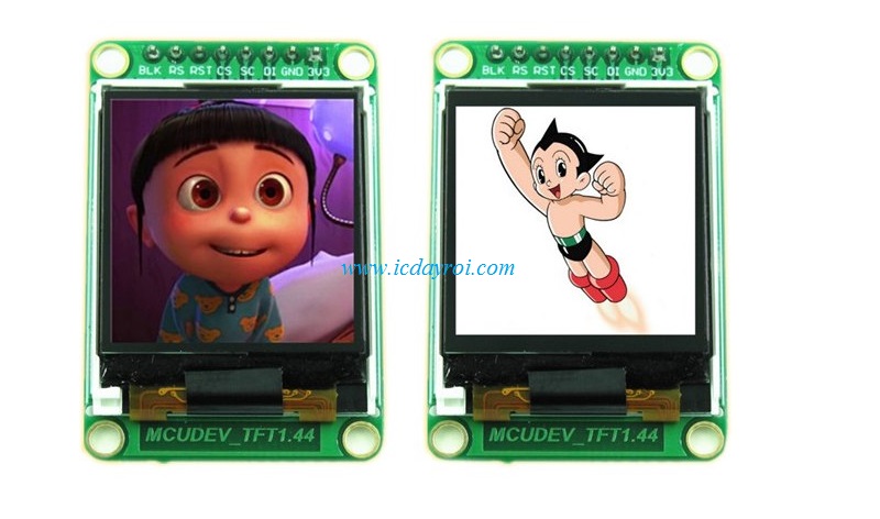 Màn hình LCD TFT 1.44 inch ST7735 giao tiếp SPI còn được tích hợp IC chuyển nguồn và IC đệm giúp giao tiếp và cấp nguồn ở hai mức điện áp 3.3VDC và 5VDC 1 cách linh hoạt, 1 điểm đặc biệt nữa của màn hình này là có sơ đồ chân tương thích để có thể cắm trực tiếp với Arduino mà không cần thêm dây bus.