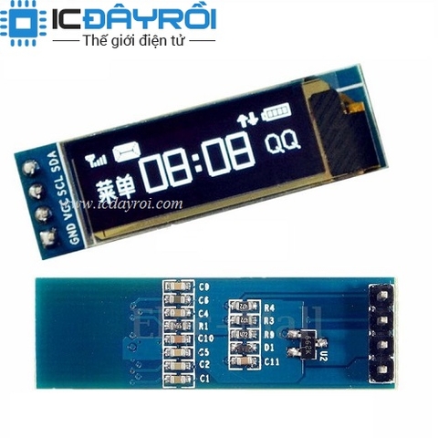 Màn hình OLED cho độ sáng, độ tương phản cực cao, tiết kiệm điện, hiển thị đẹp mắt, kích thước mini nhỏ gọn. Thích hợp các ứng dụng như máy nghe nhạc cầm tay, đồng hồ, wearable devices,... Kích thước 0.91 inch ( đường chéo khoảng 2.2 cm). Chip điều khiển SSD1306, giao tiếp I2C (IIC).