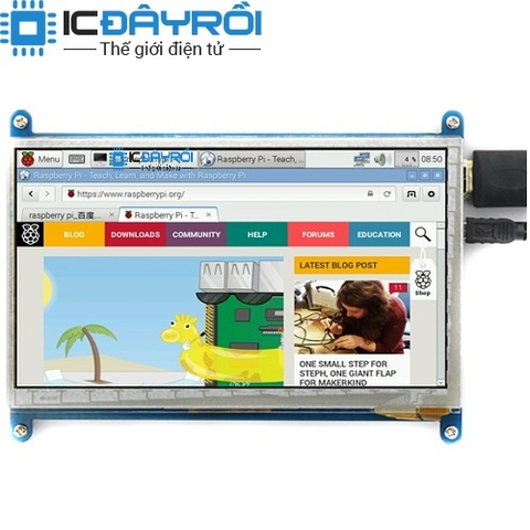 MÀN HÌNH RASPBERRY 7 INCH 800X480 TOUCH SCREEN + CÁP HDMI + CÁP USB