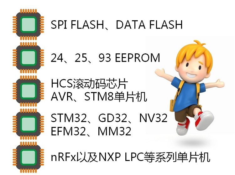 Tính nhỏ gọn và tính di động. Cầu chì tự phục hồi tích hợp để bảo vệ thiết bị liên tục. Giao diện USB 2.0, tốc độ lên đến 12Mbps. Hỗ trợ chip mã lăn (dòng HCS). Hỗ trợ 24 EEPROM, 25 EEPROM, 93 EEPROM, SPI FLASH, AVR, v.v. Hỗ trợ chế độ sản xuất hàng loạt. Hỗ trợ sao chép chip ngoại tuyến. Tự động phát hiện các chế độ chip. Tự động nâng cấp phần mềm và phần sụn. Hỗ trợ nhiều ngôn ngữ, sửa đổi hoặc thêm bất kỳ ngôn ngữ nào. Cửa sổ chỉnh sửa bộ đệm thân thiện. Hỗ trợ cho Windows 2000, Windows XP, Windows Vista, Windows 7, Windows 8, Windows 10. Lập trình viên đa năng (Kết nối với Máy tính). Lập trình viên ngoại tuyến (Không cần máy tính nữa). Hai vị trí cho các con chip là như nhau (Nếu bạn đặt hai con chip vào, cả hai con chip sẽ được lập trình). Hỗ trợ STM32 và STM8. Sao chép chip (24,25,93, spiflash, dataflash). Đầu đọc thẻ. Cổng COM ảo Hỗ trợ nhiều ngôn ngữ, sửa đổi hoặc thêm bất kỳ ngôn ngữ nào. Sản xuất hàng loạt. Đầu đọc TXT. Trình phát video. Pin Li-ion bên trong. Đồng hồ thời gian thực chính xác cao. Hỗ trợ Thẻ TF Mở rộng Tối đa 32GB. Tự động phát hiện các chế độ chip. Hoạt hình khởi động tùy chỉnh và màn hình giật gân.