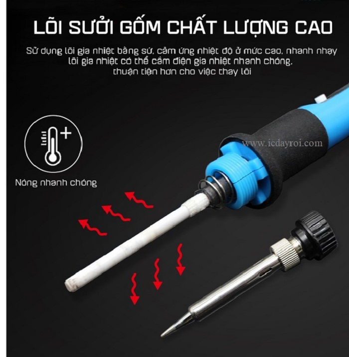- - Lõi làm nóng bằng sứ cách điện cho khả năng làm nóng nhanh, độ an toàn và khả năng chống tĩnh điện vượt trội (ESD Safe).