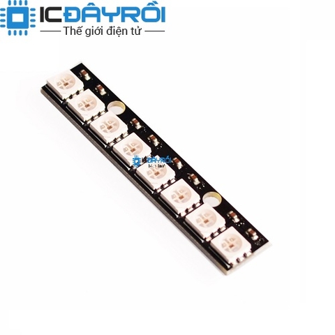 Module 8 LED RGB WS2812B được thiết kế với 8 NeoPixels LED và LED driver là chip WS2812B được tích hợp bên trong chip cũng với một mã số riêng biệt cho từng chip led. LED RGB WS2812 có thể giao tiếp với Arduino hoặc một số microcontroller khác để điều khiển qua giao tiếp Single-wire. Với khả năng hiển thị 16 triệu màu với 256 mức độ sáng khác nhau, board phù hợp với rất nhiều ứng dụng trang trí, hiển thị.